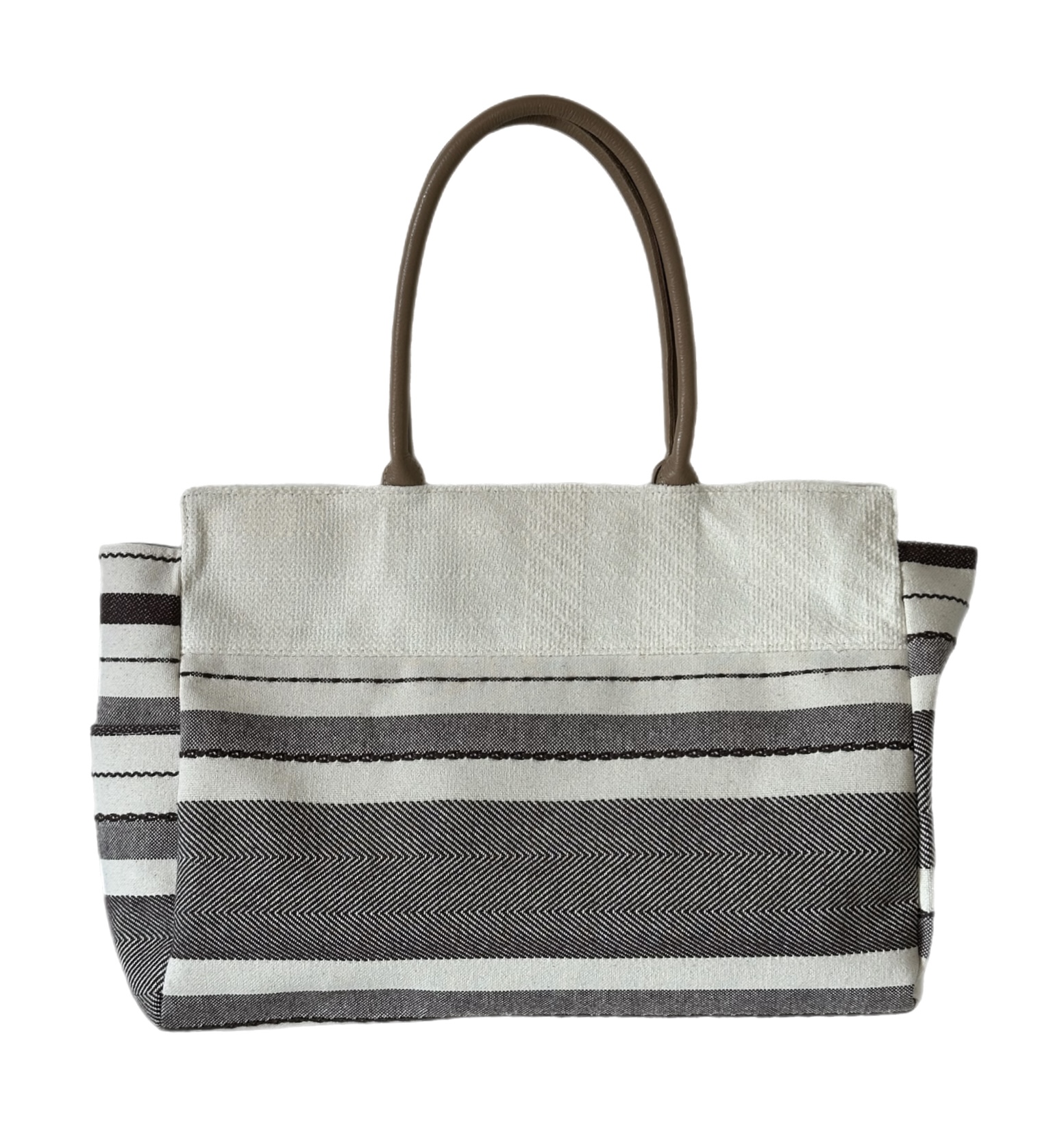 tecido offwhite com listrado offwhite + marrom acinzentado