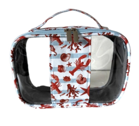 Organizador transparente com faixa de tecido na tampa